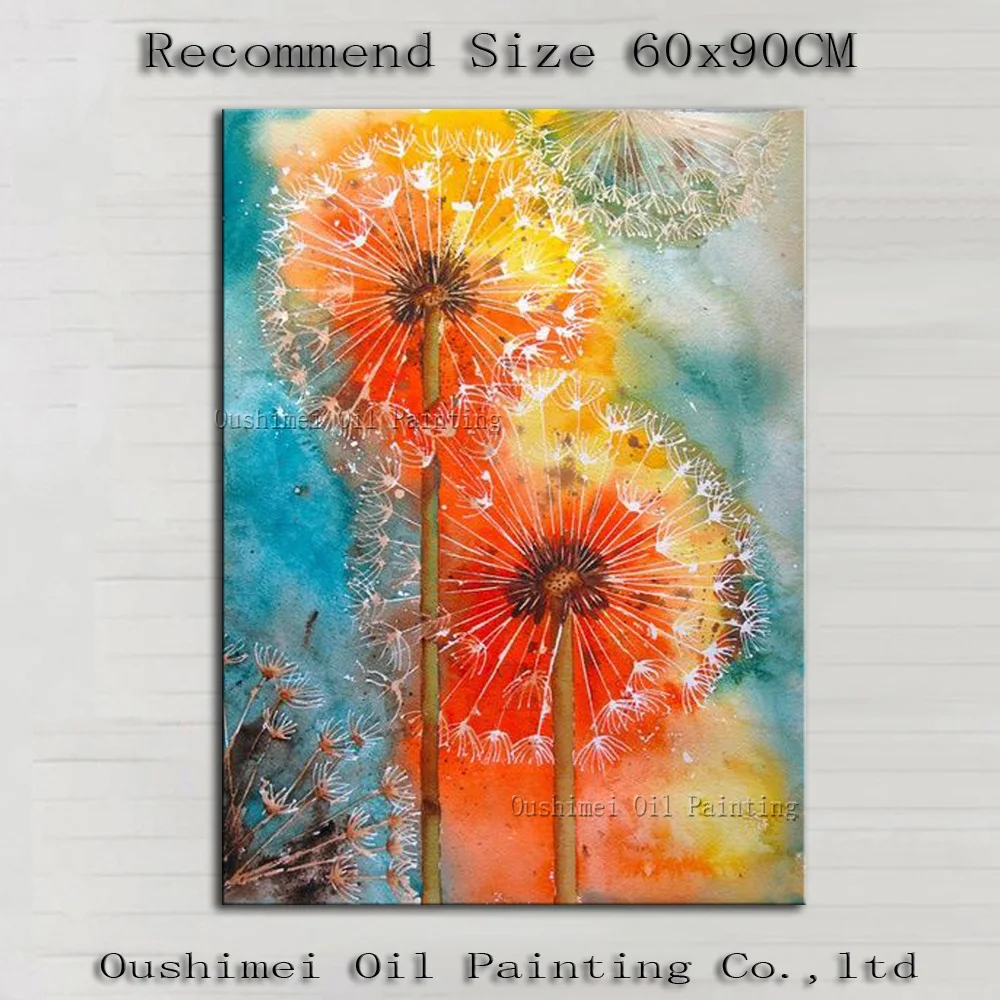 Novo pintado à mão flor moderna imagem sobre tela dandelion pintura pendurar pinturas para sala de estar decoração parede pintura a óleo laranja|picture on canvas|flower pictureshand painted - AliExpress